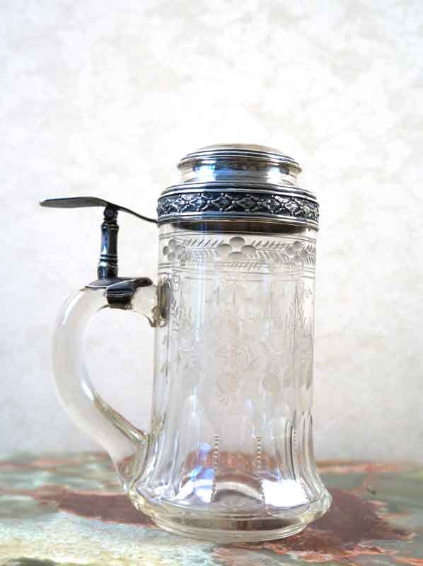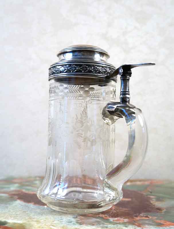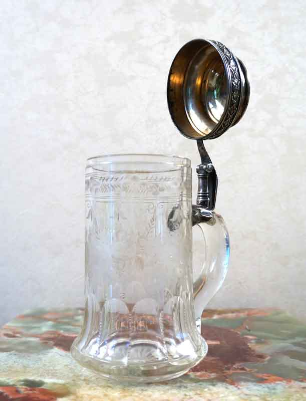 Nice Crystal and sterling silver beer mug. Cup inside plated with gold.
